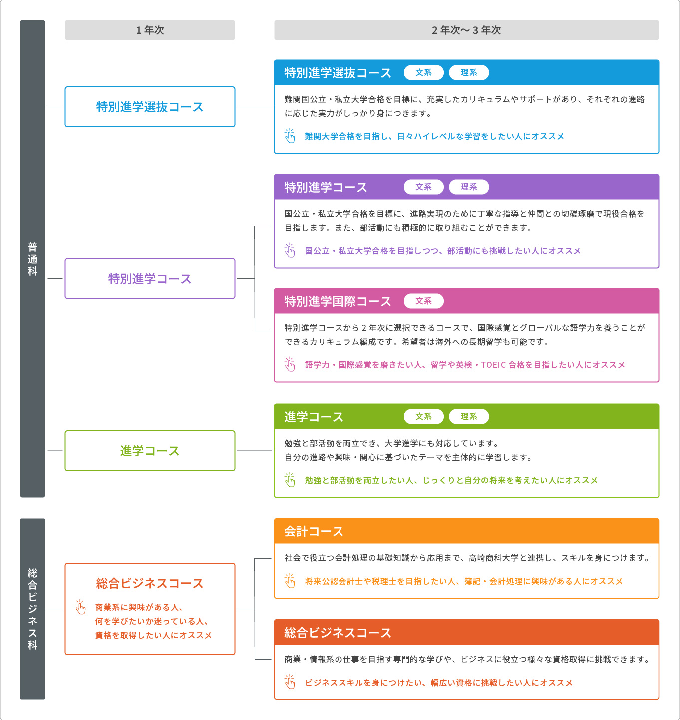普通科を志望する場合、志望するコースを選択して受験することができます。