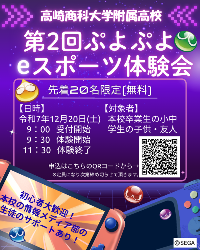 12月20日(土)「第2回ぷよぷよeスポーツ体験会」