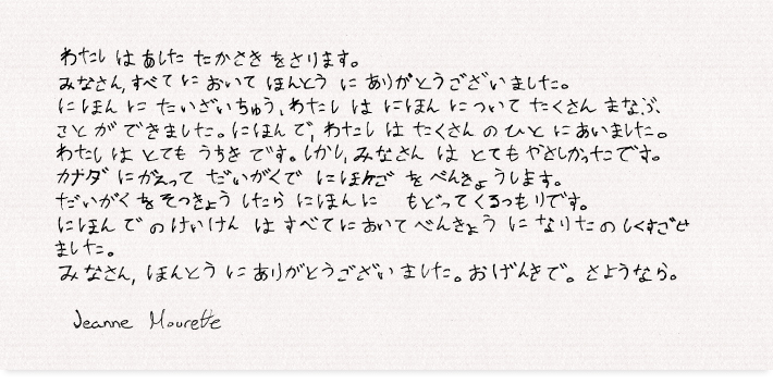 ようこそ!ジーン・ジャンヌモレットさん(カナダ在住)国際文化コースの生徒宅にホームステイ