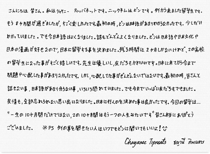 ようこそ!シャヤニー・ティッパネットさん(タイ在住)国際文化コースの生徒宅にホームステイ