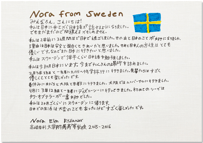 ようこそ!ノラ・エルム・リドランダさん(スェーデン在住)国際文化コースの生徒宅にホームステイ