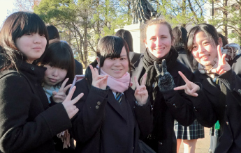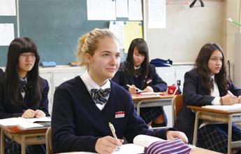 本校では、国際化に対応した教育を推進するために、留学生の受け入れを積極的に行っています。海外留学する限られた生徒だけでなく、校内にいながら留学生とコミュニケーションをとることができます。