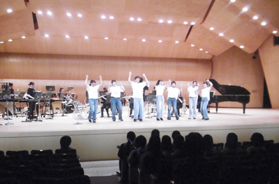 サバンナの情景を思い起こさせる吹奏楽部のバックミュージックにのせての、吉田さんの力強い声に終始圧倒されるステージでした。