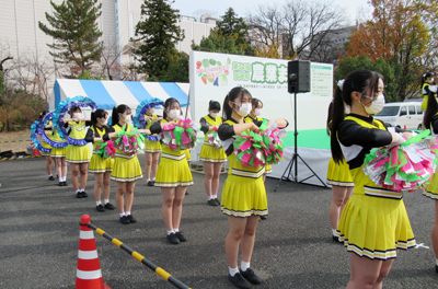 11月20日(土)・21日(日)第34回高崎市農業まつりがもてなし広場で開催され、本校バトン部と高崎高校和太鼓部が招待され演技・演舞を披露しました。高崎市農業まつりは、高崎市の農産物を紹介し、食の大切さを考える催しで、販売、体験、ステージショーなど多彩な内容でにぎやかに開かれています。今回は、獅子舞、朝採れ野菜を販売する軽トラマルシェ開催、大型の農業機械の展示などが行われました。