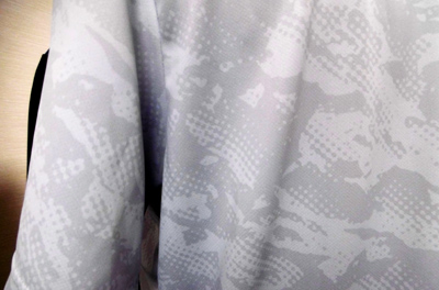 シャツは、白無地からグレーに変更です。かすかにマーブルチックな柄が入っていて、下に着たものが透けにくくなっています。