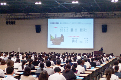 10月7日(土)に中学生・保護者を対象とした令和5年度入試説明会を実施しました。昨年に引き続きGメッセで行われ、午前・午後合わせて約1000名の方々にご参加いただきました。科コースや募集要項、インターネット出願などについて参加者全体への説明ののち、学校生活の様子や疑問点などより細かくお伝えする個別相談のブースも設け、こちらも盛況でした。各ご家庭で進路の参考にしていただければ幸いです。