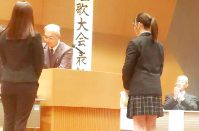 今回は8064首の応募の中から本校の生徒2名が入賞。さらに、そのうちの一首は最優秀賞である吉野秀雄賞を受賞しました!