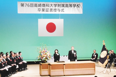 3月1日(土)に群馬音楽センターにて、第76回卒業証書授与式が執り行われました。欠席者がなく、卒業予定者全員がそろっての卒業式を迎えられ、感無量です。