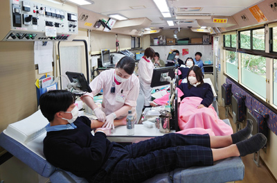 本校では地域社会への貢献活動の一環として、毎年、群馬県赤十字血液センターによる学校献血に協力しています。