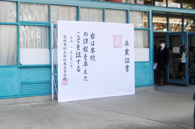今年度は新たな試みとして、巨大卒業証書が設置されています。