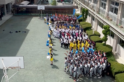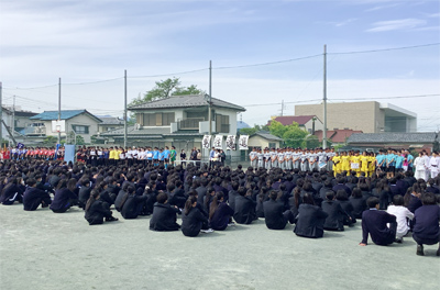 校庭で全校生徒を前にしてハツラツと抱負を語ってもらいました!