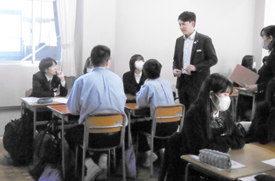 来校された銀行員には、本校卒業生の姿もあり、学生時代を知る先生方が当時を懐かしんでいました。