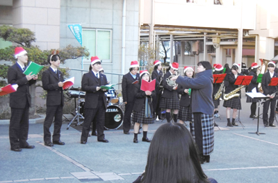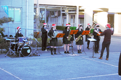 12月21日(木)の放課後に、ロータリーにて合唱部と吹奏楽部の合同コンサートが開催されました。それぞれクリスマスにちなんだ演目を披露し、冬の澄んだ空気にきれいな音色を響かせました。