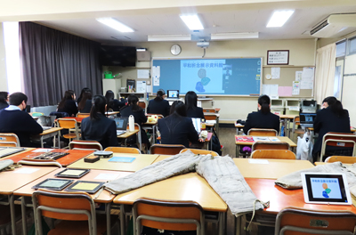 本講座では映画鑑賞のほか、レプリカですが実際の資料に触れたり、シベリア抑留についての授業を受けたりします。平和記念展示資料館とZOOMをつなぎ、学芸員さんから直にうける授業には、生徒たちも真剣な面持ちで参加していました。